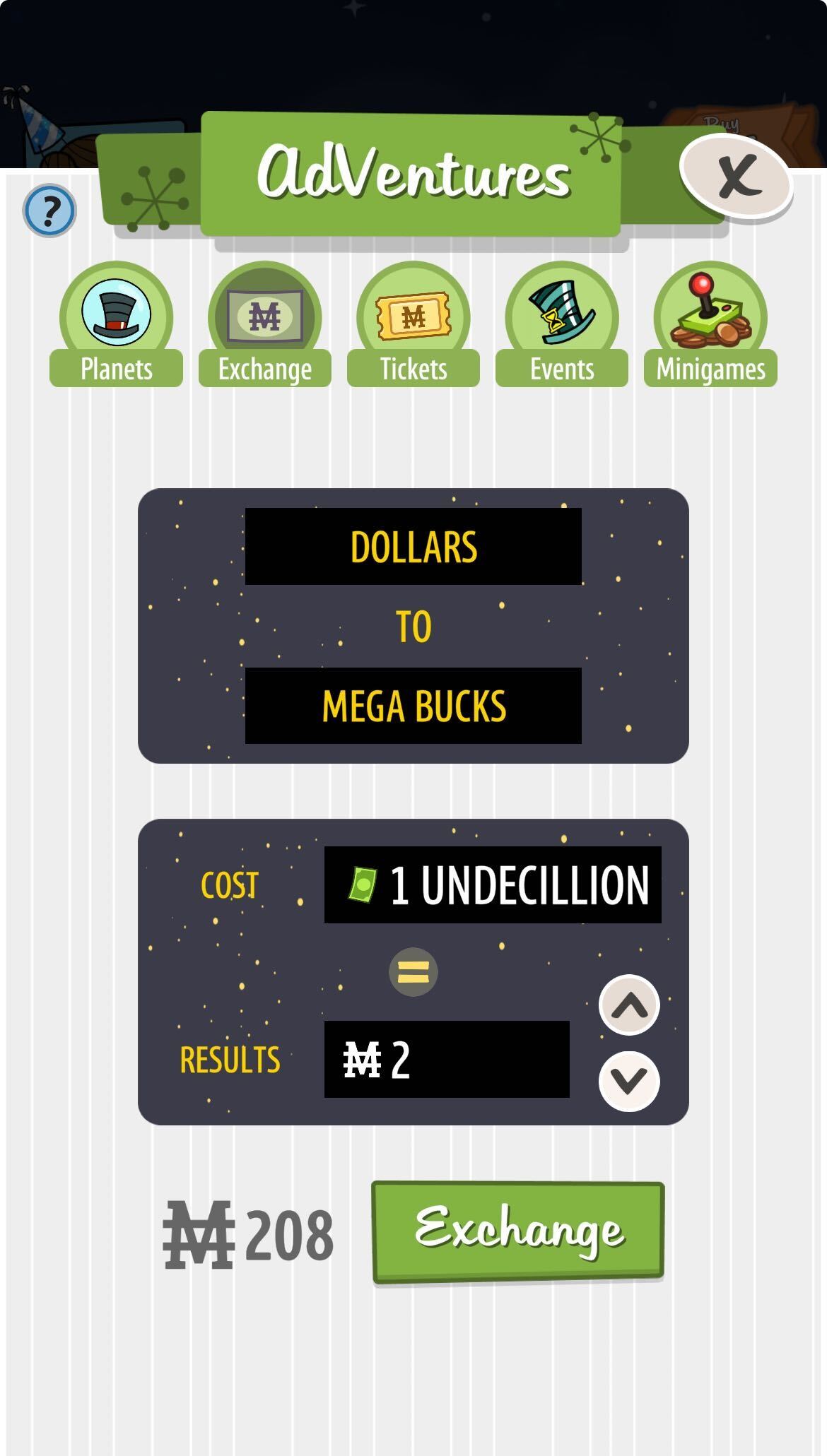 Once your businesses are booming, you can exchange cash for Mega Bucks! Use the arrows to adjust how much you are willing to cash in for currency!
